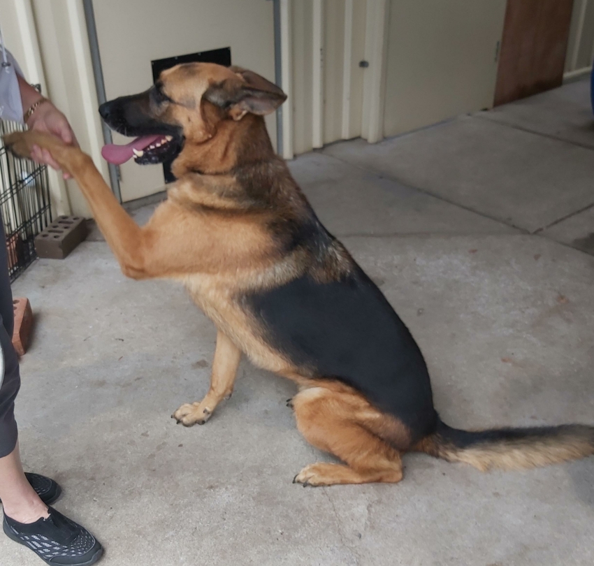 This is Zeus, a German Shepherd with a very soft nature. Zeus came into rescue after his owner was transferred and was not able to accommodate him.