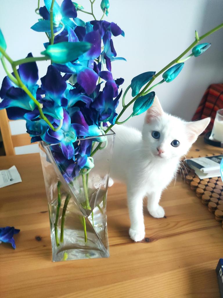Lilou is a strikingly beautiful kitten. She has heterochromia, with one green eye and one blue eye, which makes her extra gorgeous! She is the cheeky one of the litter, loves to explore every nook of the house and will taste everything. She is very playful and will wrestle her brothers around. Anything dangling is a toy for Lilou and she can play with a piece of string for hours. Lilou is also affectionate in her own way, she will tackle her human's feet and play in her own loving way. Ideally adopted with her brothers, she will be a perfect addition to any family with young cats and kids as she needs to have friends around her to play with.