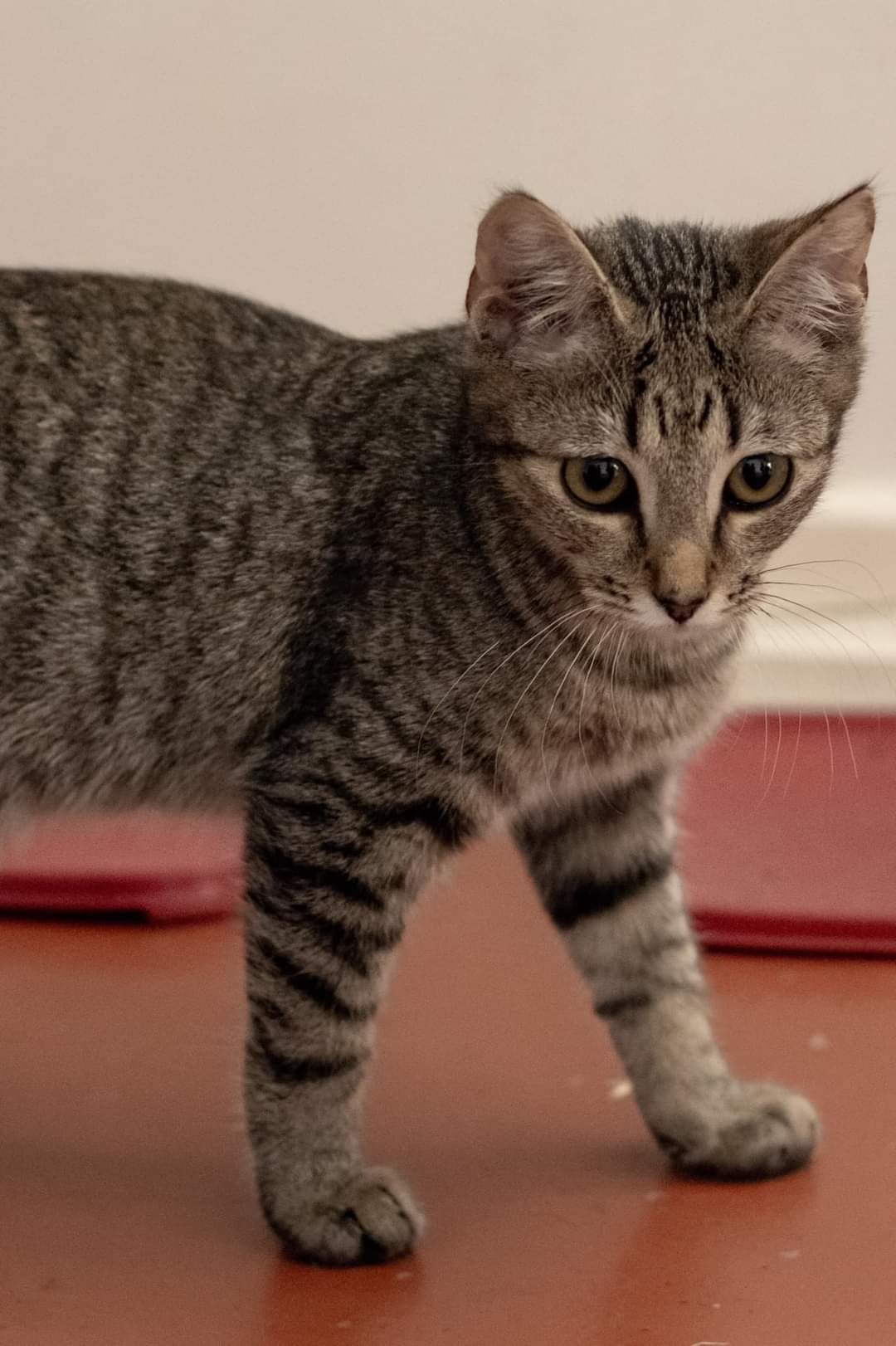 My ideal home has no inside dogs, or very calm and cat-friendly ones - I currently live with 2 dogs and tend to disappear when they come inside. Not a lot phases me otherwise and I am a normal cat; I enjoy following my people around, and sleeping on their bed at night if they'll let me! I am very well litter trained, and love to play with cats, humans or toys. A real happy-go-lucky girl who will make a great addition to any family!