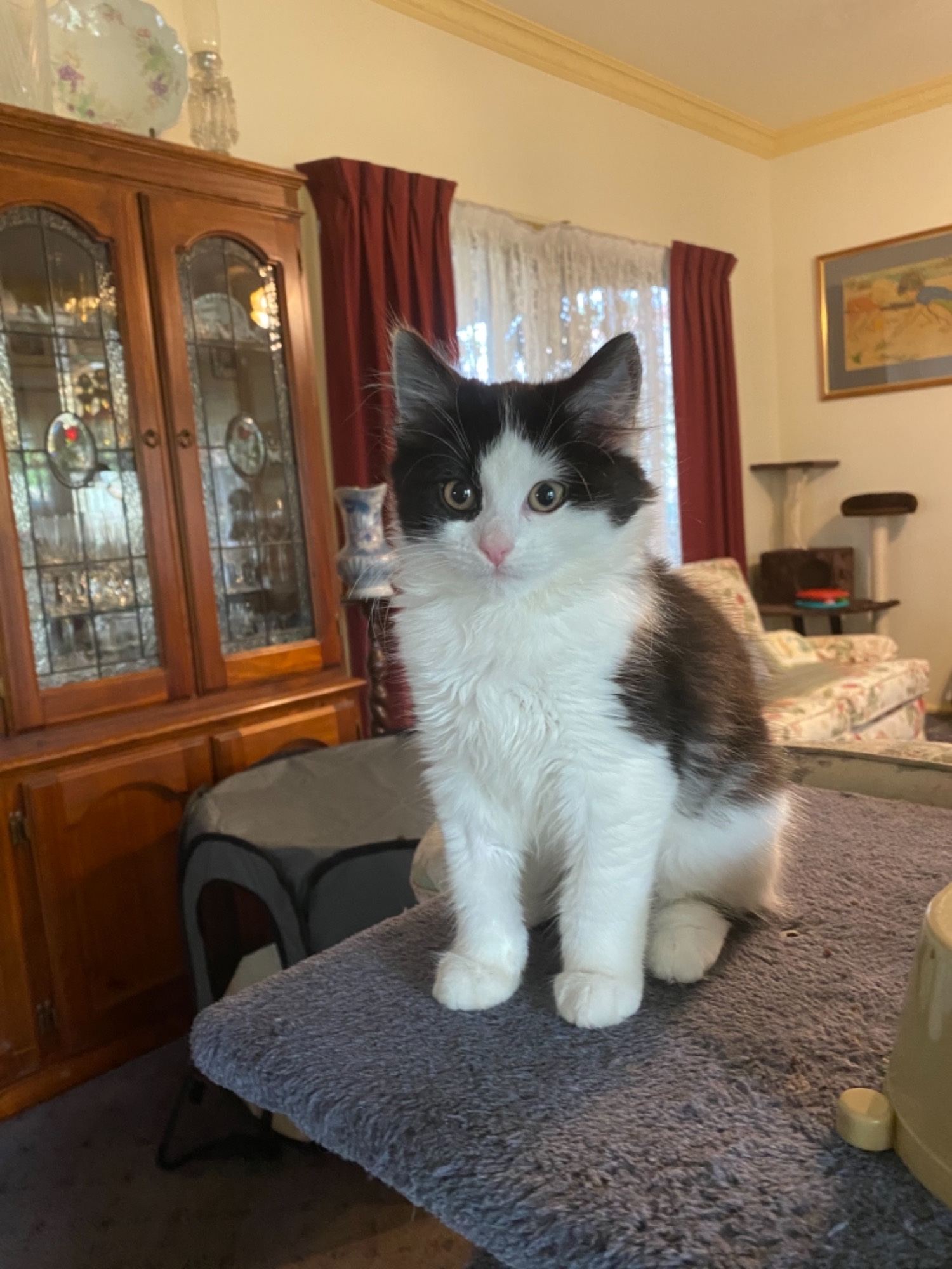 Very cuddly and quite happy to be on his own. Perfect as a single cat or would also be great as an additional cat.