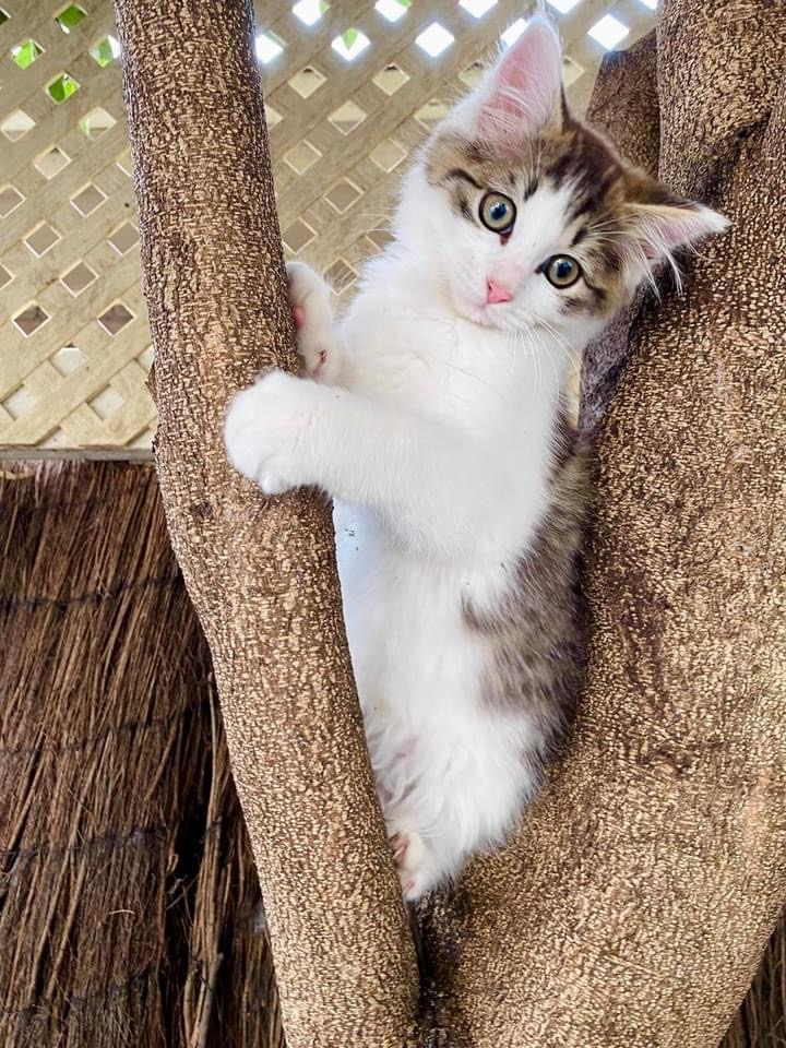 This gorgeous feline is affectionate, soft and cuddly with the sweetest PURRS to win your heart over 💓 Millie has an inquisitive and sociable nature and she loves to be around different people 👨👧👧🐈 She is also very adventurous and enjoys being in the garden, playing with the leaves and the bark, and hiding under the bushes 🍂 Millie can entertain herself with the simplest things, exploring the nooks and crannies of your home and climbing up high 🌳 A tall cat tower set aside a window would be the perfect spot for her to laze in the sun watching the world go by 🌞 Busy exploring and adventuring all day, Millie may come to sit on your lap or your shoulders or even cuddle under the blankets when its time to settle in 🛌