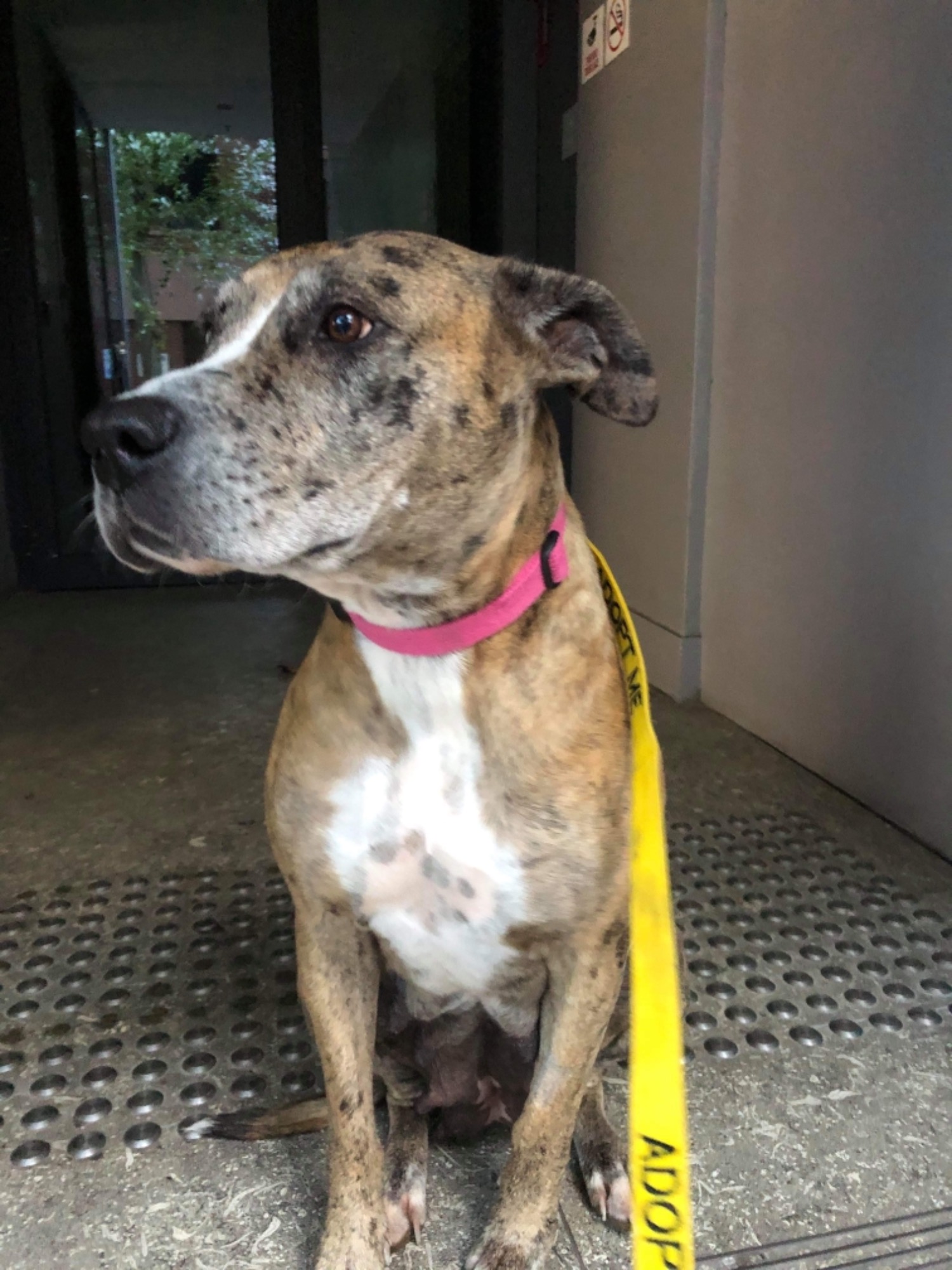 The most cuddly, loving and chilled Mastiff Cross you’ve ever met is ready to find her perfect match. This lovely girl has had more than one litter in her lifetime, but after being desexed is finally ready to settle into retirement. We believe she is approximately 7-8 years old.
