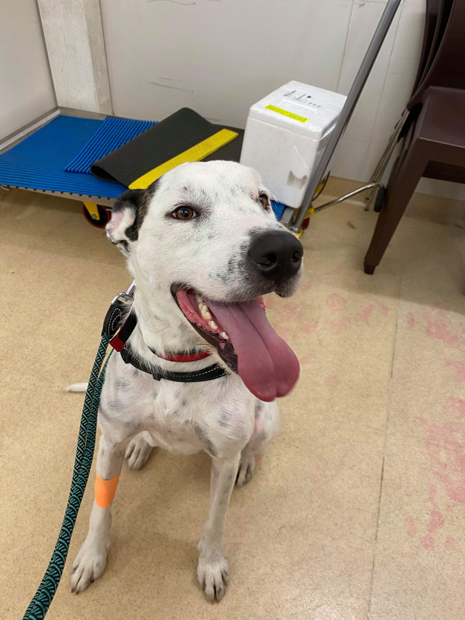 Im new around here and its time for me to find my forever home! My foster family says that I am a goofy loveable girl. My favourite all time game is to play ball! I even will hide it from you int he side of my cheek until you play with me.