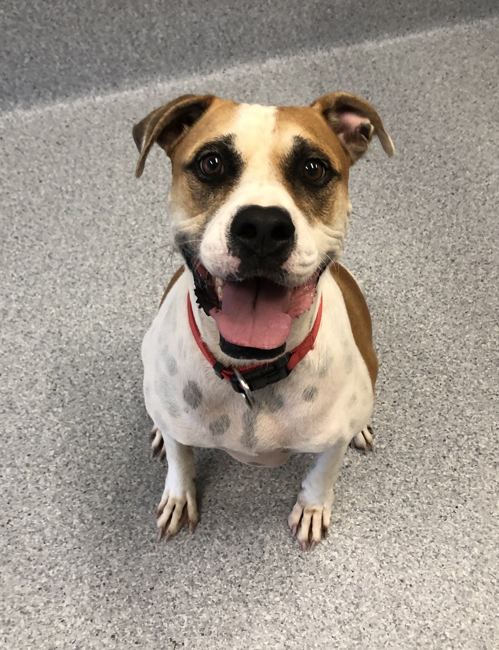 I'm extremely affectionate and love to cuddle and give big slobbery kisses. I'm a big girl, so more of me to love! I'm just looking for a laid back lifestyle with some people who can take me on walks.