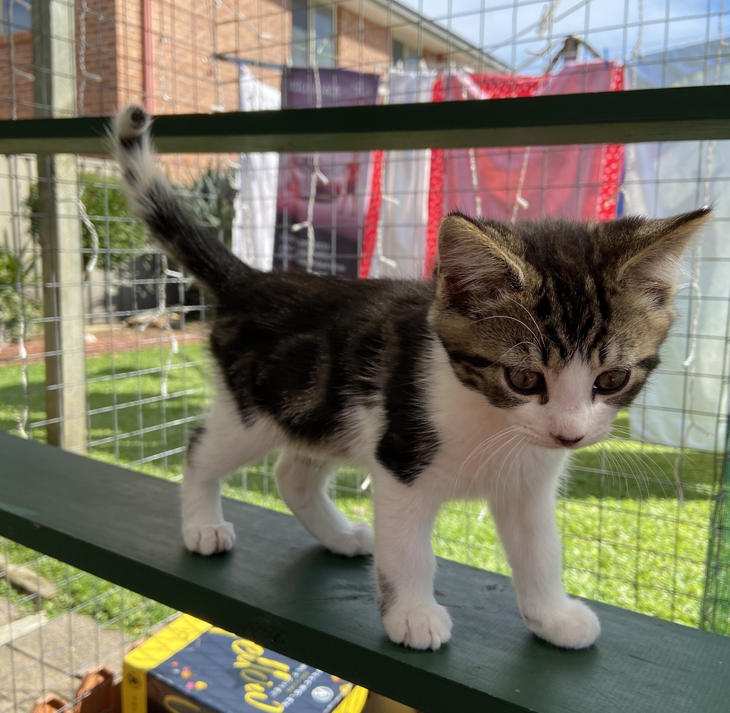 Introducing Robert - The Great. Robert came to AWL after being abandoned with his 4 siblings in western Sydney as underaged kittens. Robert is a tabby cat with an unusual patterned tail tip which makes him a very handsome tabby male. Robert is the most affectionate kitten in this litter and is alway first in line to greet his foster mum and demands the attention of everyone in the sweetest possible way. His foster mum thinks he is extra special. If you would like to have greatest in your home, apply now for a preadoption application to adopt Robert.
