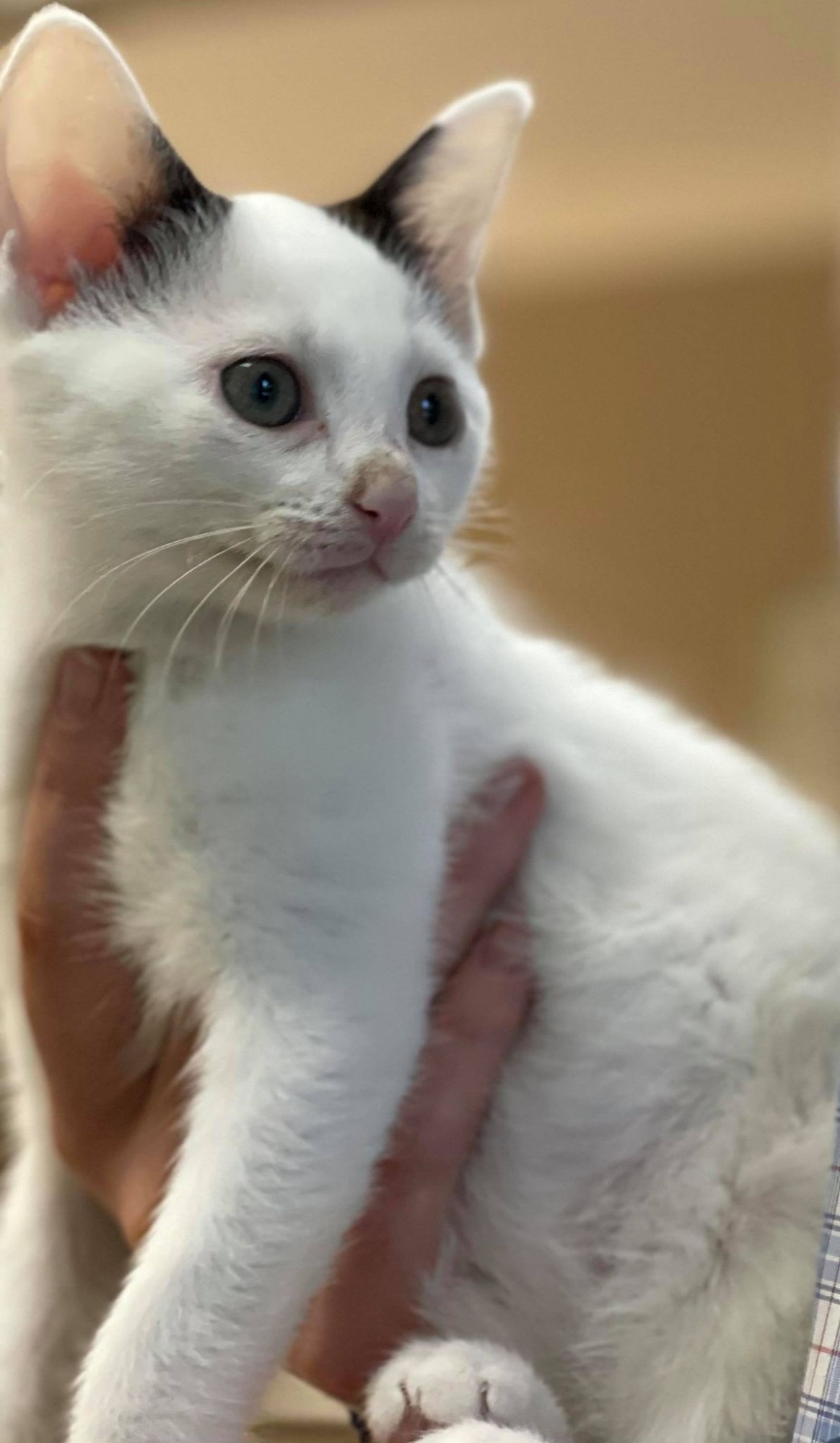 Imp 415 "GG". Female White and Black Domestic Kitten approx. 7/8 weeks. GG is a happy go looking little kitten. She is been socialised with kids, people and other cats. She really is so easygoing. She is litter trained. She will be microchipped, registered, desexed, vaccinated, wormed and flea treated. Her adoption fee is $305. Please call 6583 3488 if interested.