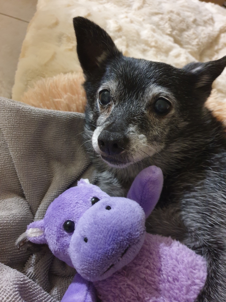 Hi I'm Daphne. You could consider me a pensioner. My approximate age is 15 as assessed by the Pound who described me as a sweet girl. My foster carer totally agrees. I have difficulty seeing and hearing, however I'm getting by, discovering all the nooks and crannies of my foster house and back yard. I get on with the resident and visiting dogs and just potter around all day. I do have a bit of stiffness in the hips however, I walk well on the lead and sleep soundly throughout the night, and am incontinent during the night only. I take myself outside to do my business during the day. My foster mum places puppy pads on my bed so it's hit and miss whether they contain my small amount of urine. This condition can be treated with medication if necessary. I eat real food and I have many of my own teeth. I would prefer a level house and garden as I cannot see the steps properly, however I did get used to two and I am now okay. My heart is strong and I do not have a murmur. I had been previously desexed and during my recent dental visit (9 teeth were removed), my vet found a small hernia which he repaired so I'm ready to go to my new home. My foster father, also a pensioner and mother are falling in love with me however, I would love to share my personality with someone who will understand my issues so that my foster parents can rescue another furbaby in need.