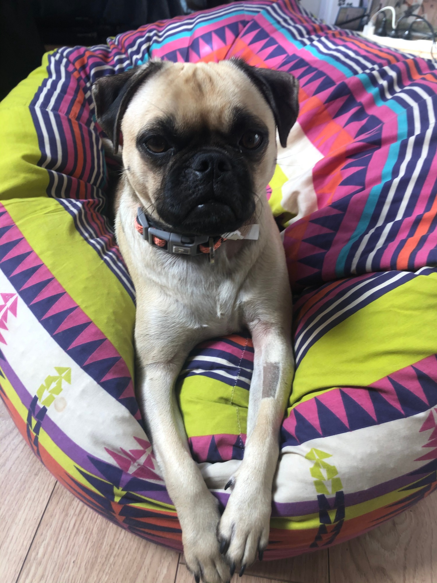 Coco is a lovely young lady who loves snuggles and just wants to be with you all the time - 'the pug shadow', in this case a jug! 😀