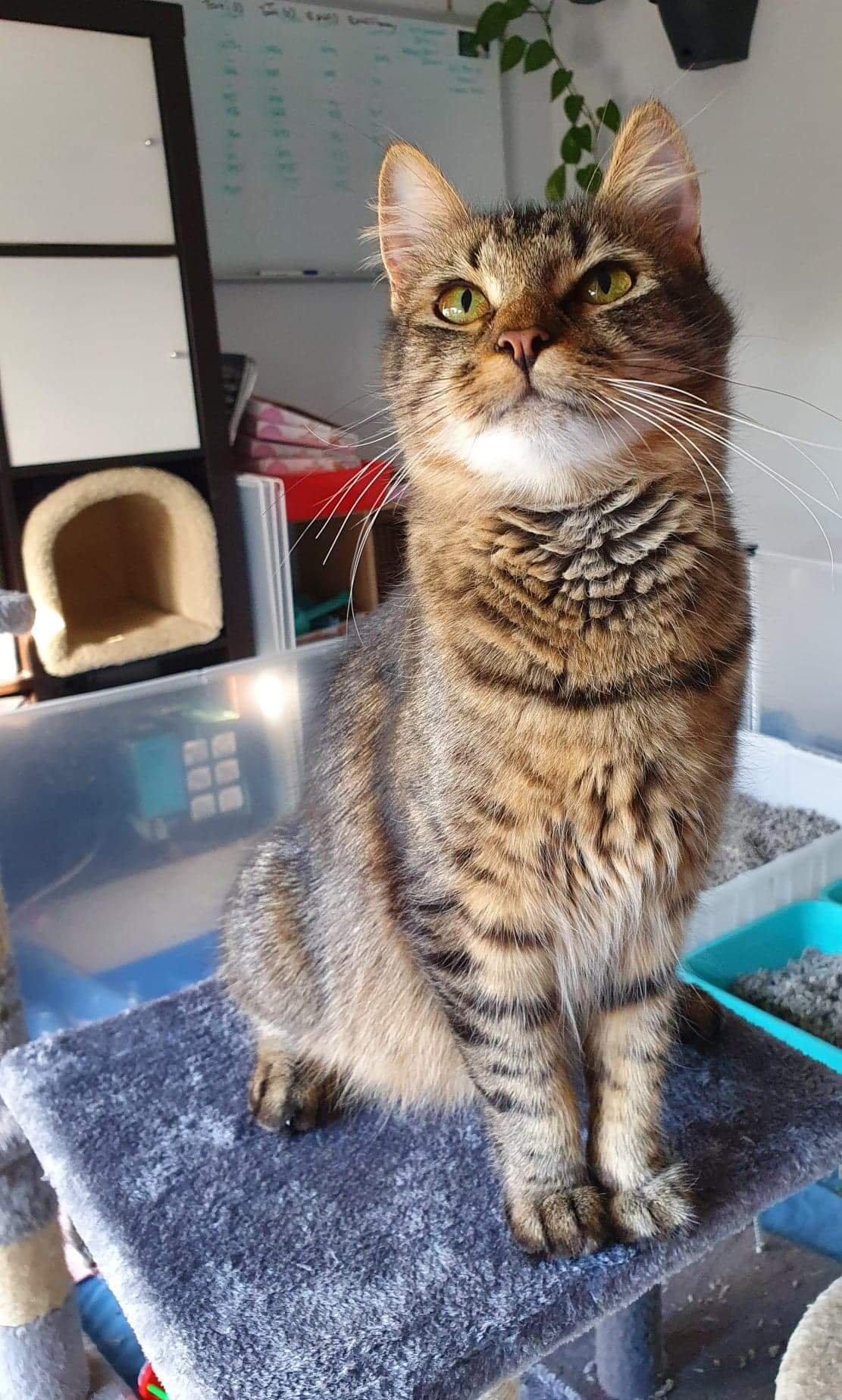 Alice found herself pregnant in the pound at only 6 months old - they thought she had worms but it was actually 4 beautiful kittens! Alice was taken into a foster home where she was safe, warm, and loved, and has done an amazing job raising her kittens, despite being a kitten herself! All of her kittens are now growing up and moving on to find their new homes, and it's time for Alice to do the same.