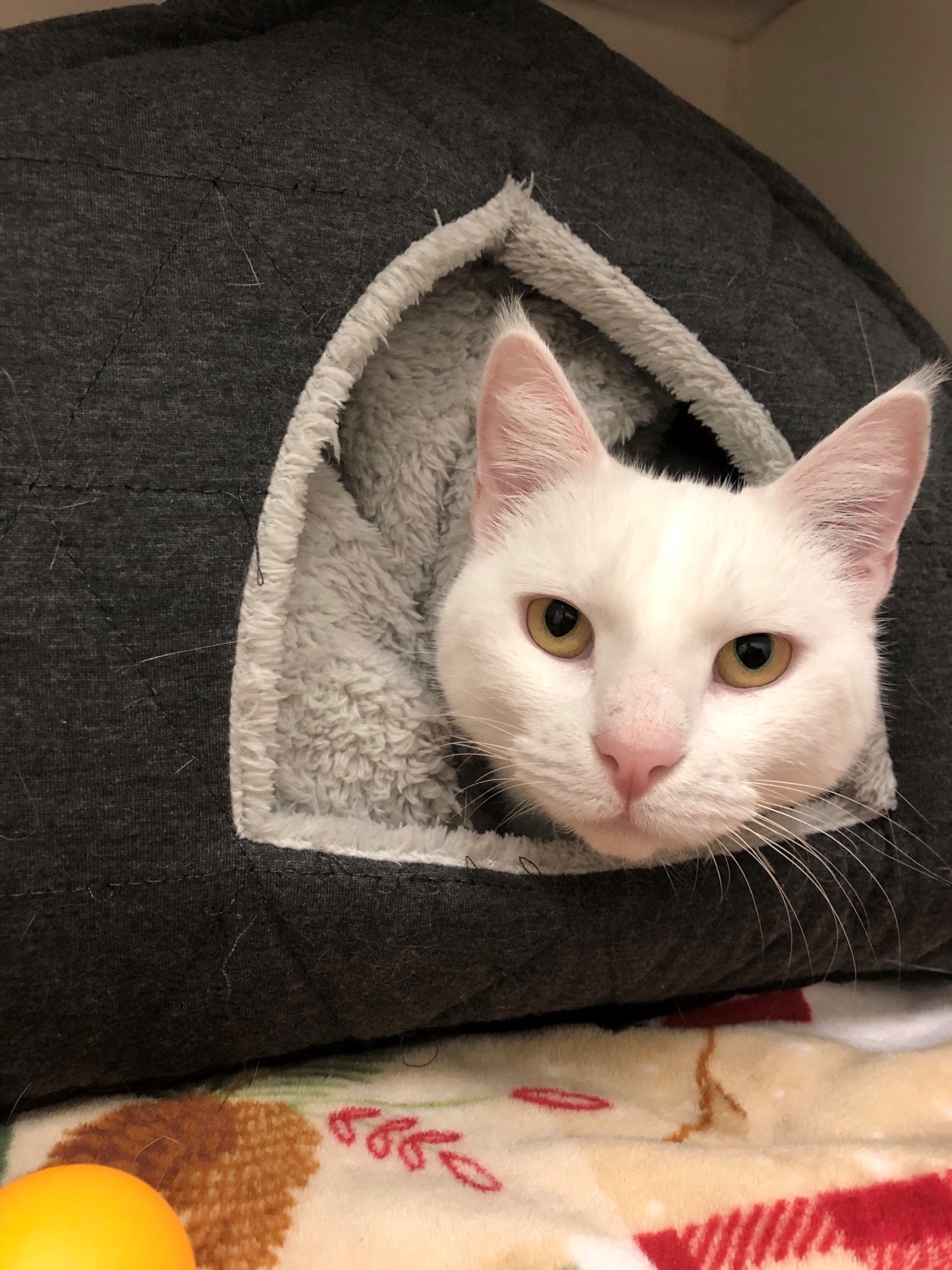 I love sitting in my cat igloo and batting a ping pong ball around when I’m feeling playful.