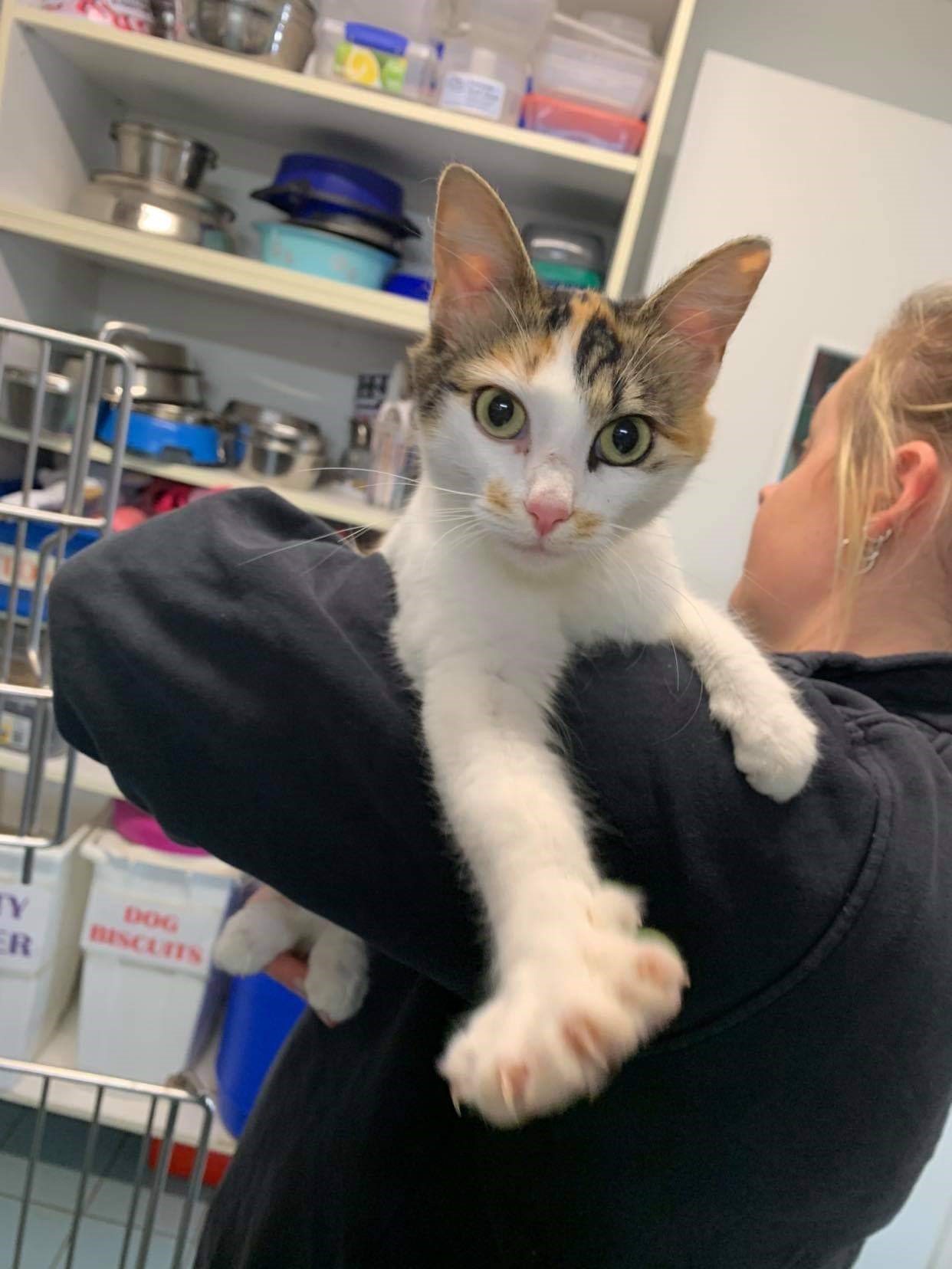 "Pretty" has a very gentle & loving personality. She presented to our rescue as a stray cat that was stuck up on the roof of somebodies house. But despite her lovely nature no one came forward to claim her. She has now been vaccinated, microchipped & de-sexed & is looking for her new forever home. She gets along well with other cats once she gets to know them but is still a little nervous around boisterous dogs.