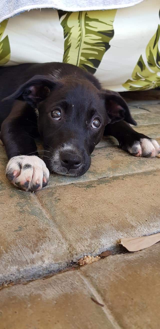 Since coming into care, I have proven to be a bundle of fun. I am smart, playful and a very friendly doggo. I currently sleep in a crate at night, and my toilet training is going great! I don't love baths (who does) but I let them do it to me, and I was wonderfully behaved at the vets! Being a mix breed, my adult size isn't known for sure, but the team at OTC think around 25kg - my mum is fully grown at 22kg! We don't know who my dad is, I guess he bailed on my mum- but we think he was likely around the same size.
