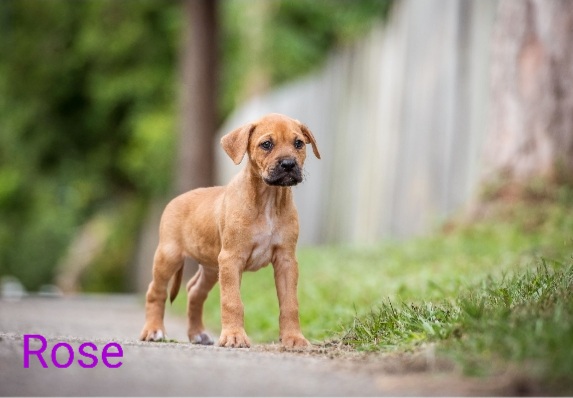 Rose loves everything and is the sweetest girl. She is best suited to a home with another dog and someone who isn't away all day.