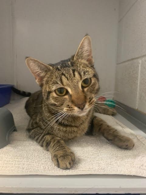 Ms Myrtle is a very friendly and smoochy tabby female brought in as a stray. She had no microchip and no one came forward to claim her. She has obviously been around people as she is very confident and lovable character. She would suit a family with gentle kids. She can ""help"" you fold the washing and greet you on your return from work.
