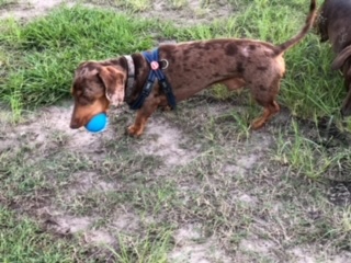 5.5 yrs old miniature smooth chocolate dapple male Dachshund. 8.4