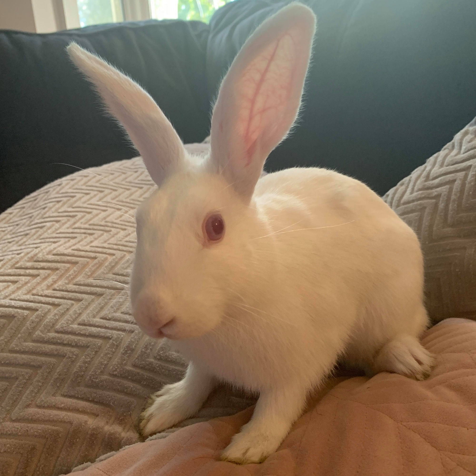 Puk is a very inquisitive bun who loves a cuddle on the couch she will come too you for pats and loves to climb over your lap, Puk loves a good treat and dosnt mind a soft brush she has very silky fur easy to manage.
