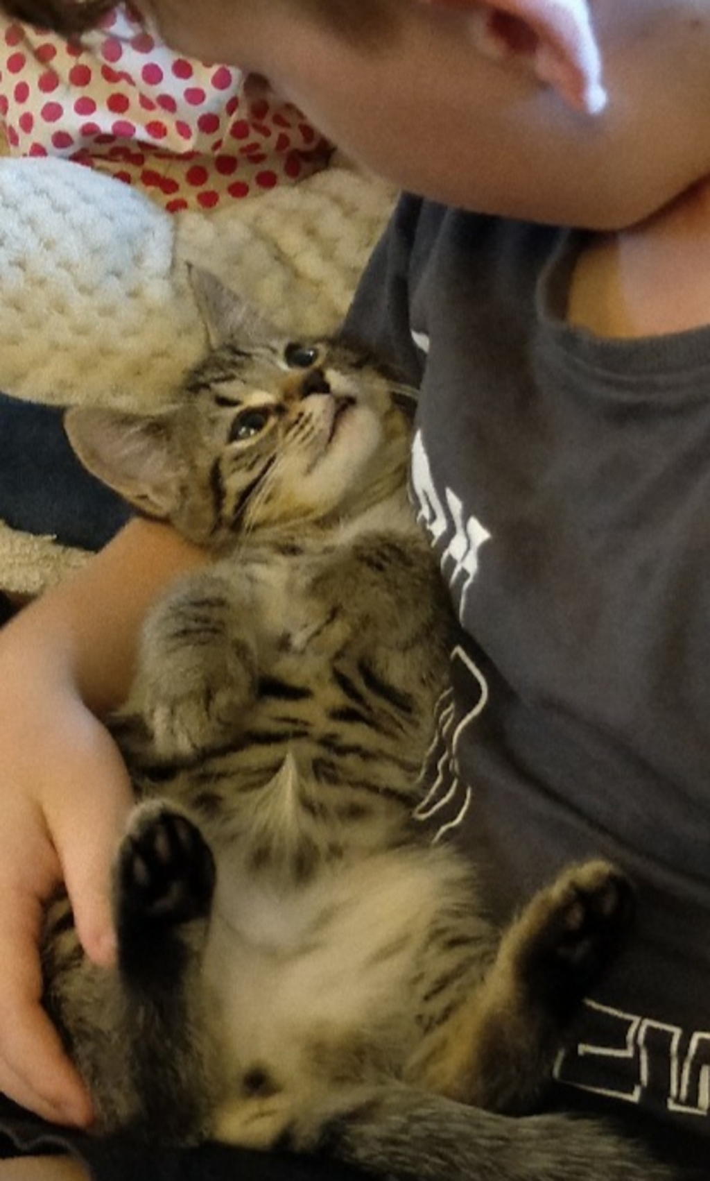 Hi, my name is Cinders. I'm an energetic little girl who loves to do crazy kitten things, but as you can see I am also a big softie who loves to cuddle.