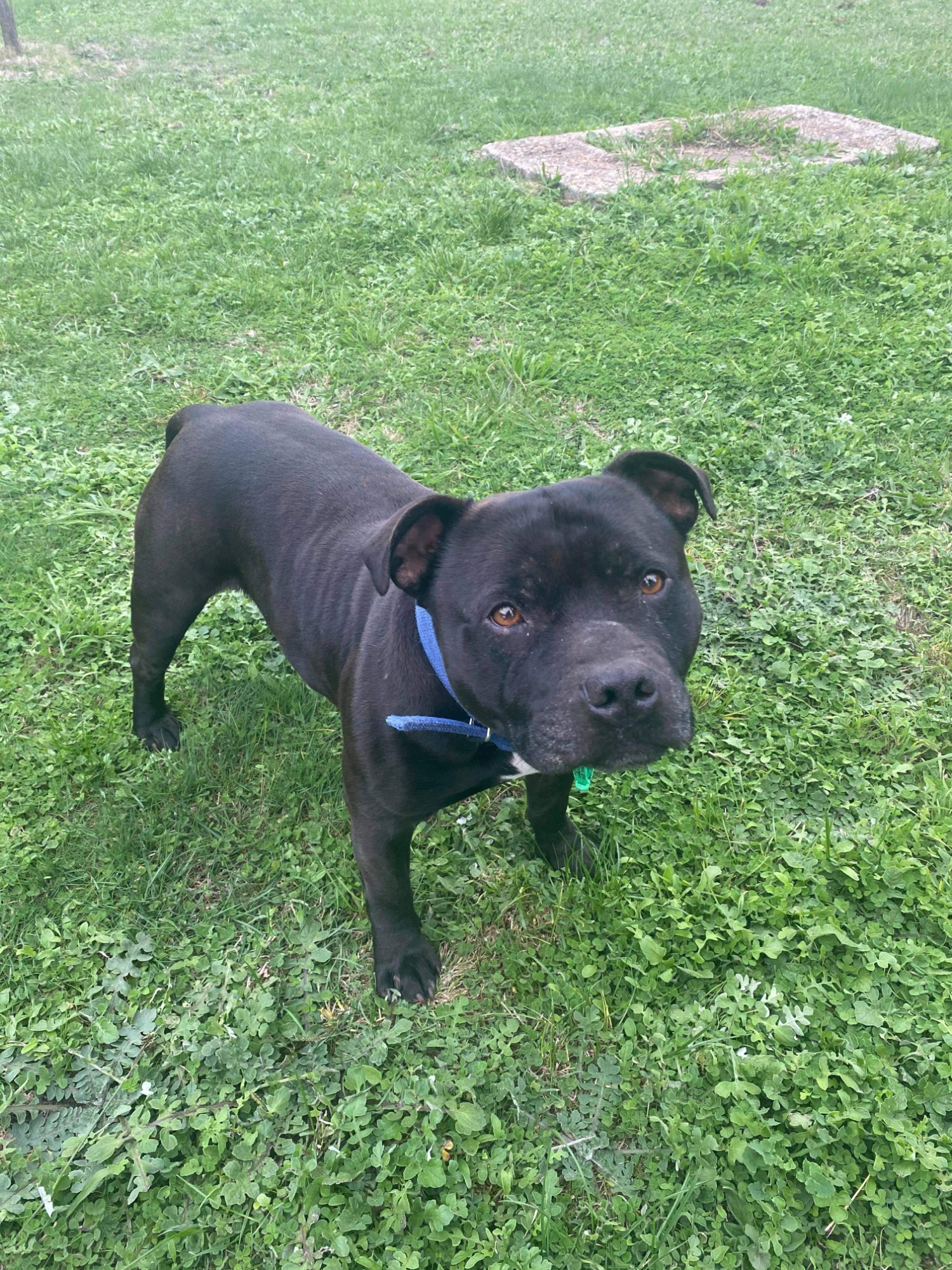 Built like Hercules and with the heart of Eros (Greek god of love), Klaus is your typical cheerful Staffy bursting with love.