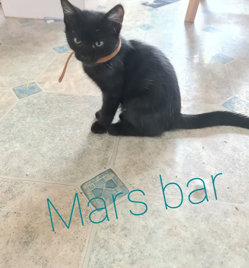 Hi, my name's Mars Bar. I am a shy little girl at first but once I get to know you I'm actually quite cheeky and love to play. I love my 3 other siblings but am still getting used to adult cats. I get very angry as soon as I see one. But I should warm up to them quickly. I am very good with my litter box. I have to be fed separately because I think everyone is trying to steal my food and get a little grumpy. But don't let that stop you because I am just the sweetest gal ever and I am sure to steal your heart.-
