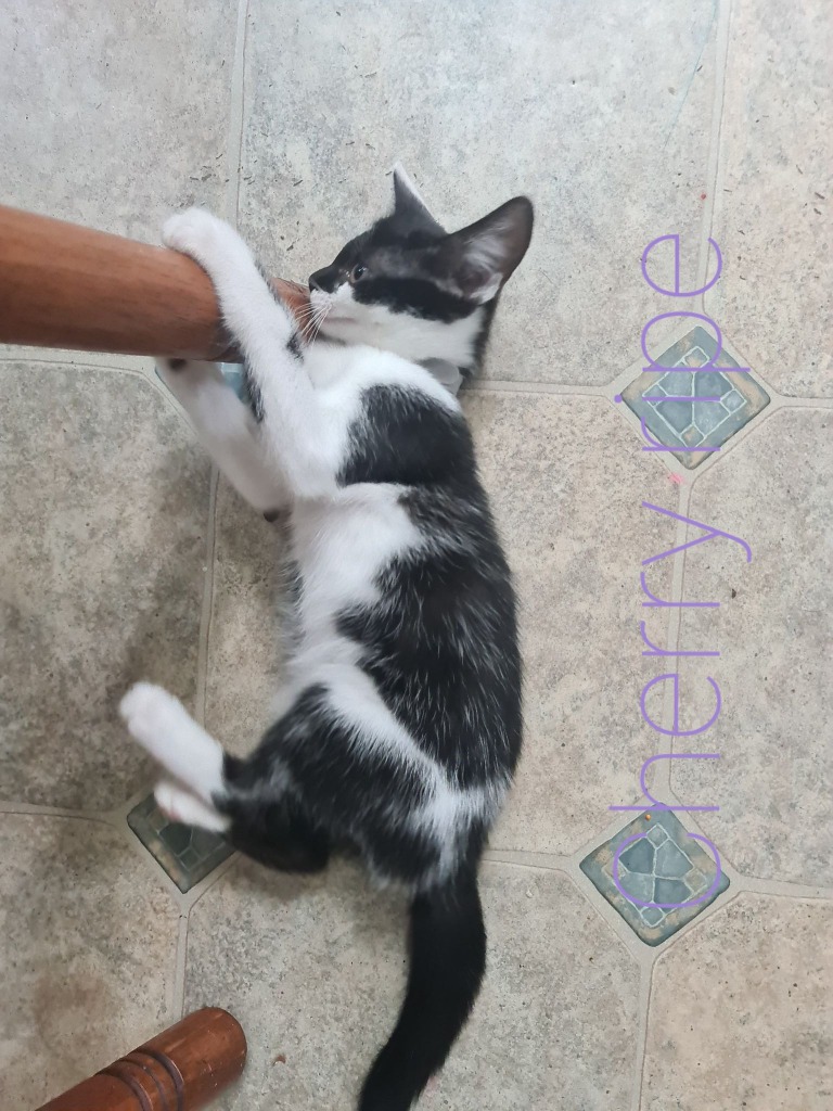 Hi I'm Cherry Ripe. I'm a playful little girl - I love to run around with my sister Mars Bar, and play with kids. I also love climbing into your pillow case and playing with your face. I love to eat food and I am really good at using my litterbox.
