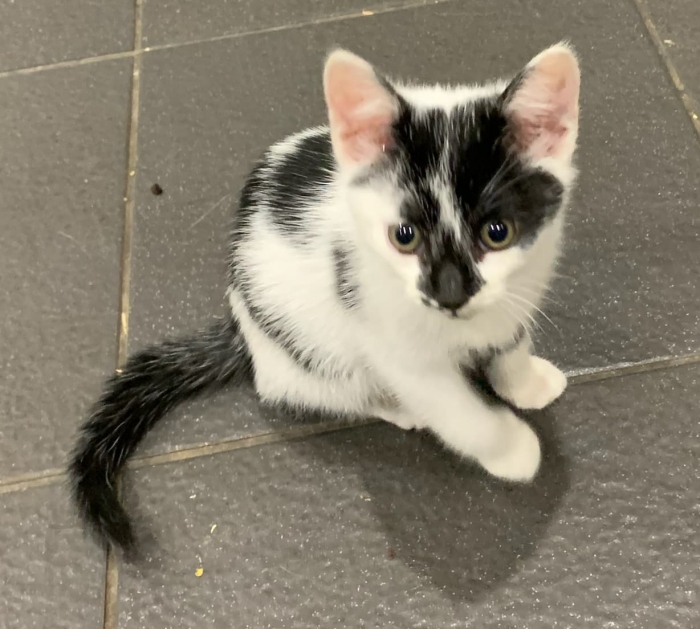 shi is a lovely little girl who came into care with her 3 siblings. She was the shy one of the litter but within a few days she turned out to be one of the sookiest. She can run around like a mad thing playing but then she will seek you out to just be with you when it's sleep time. Not the sort to purr all the time (like her siblings) it's all the more special when she does start to purr during cuddles. And watch out if you rub noses with her, she can then spend the next 10 minutes intently (gently) pushing into your face - which her foster carers children think is hilarious.