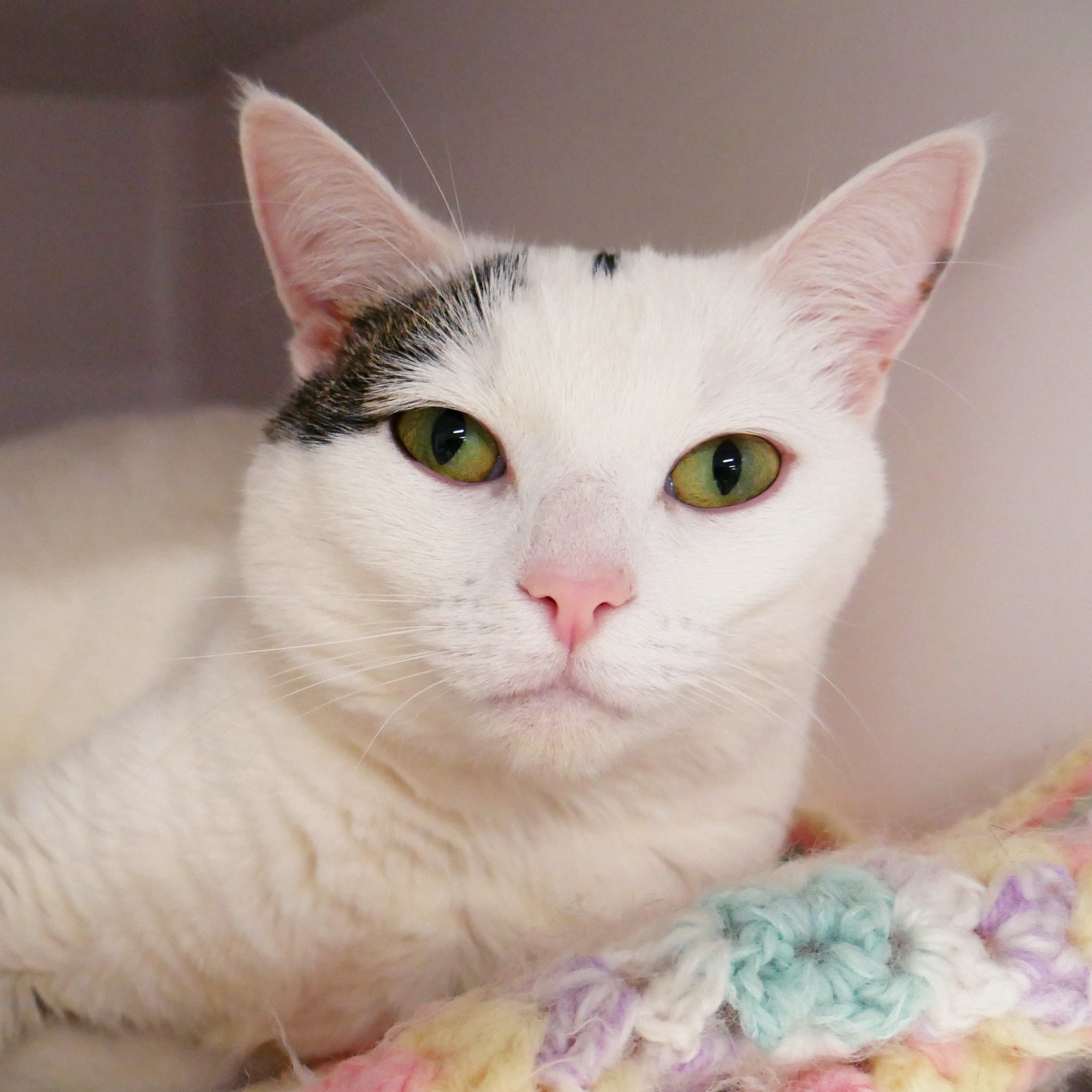 Copernicus is a stunning lady with eyes that will captivate you. She can be shy and timid meeting new people and in new surroundings, so she would like a calm home without young children. A home that will give her a bit of time to find her feet and her favourite spot on the couch. She would be best suited to an indoor only home to protect her nose and ears from skin cancers.