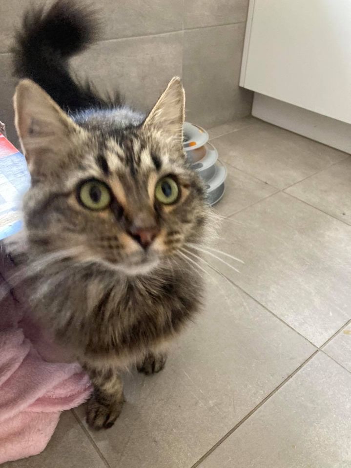 She’s not really phased by dogs and has only had a little hiss at the other cats here but with proper introductions I think she’d be fine with others.
