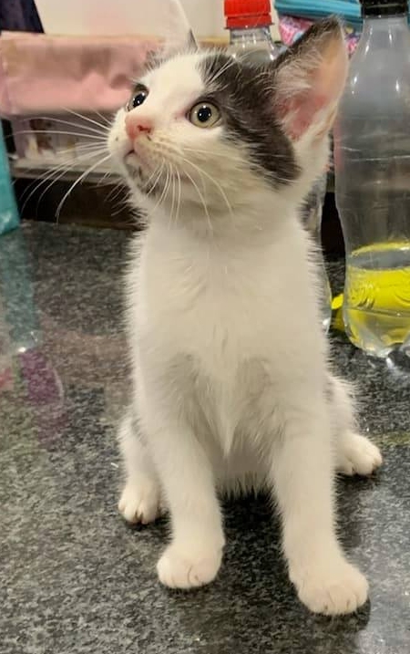 Moo is a typical friendly playful little boy. He loves wrestling with his siblings, eating and get cuddles. He is quick to purr and enjoys being handled and having a snooze on laps.