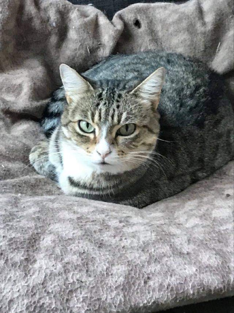 I’m a sweet young girl who got to come to this rescue with my babies. We got loved and fed and enjoyed the humans and having cuddles.