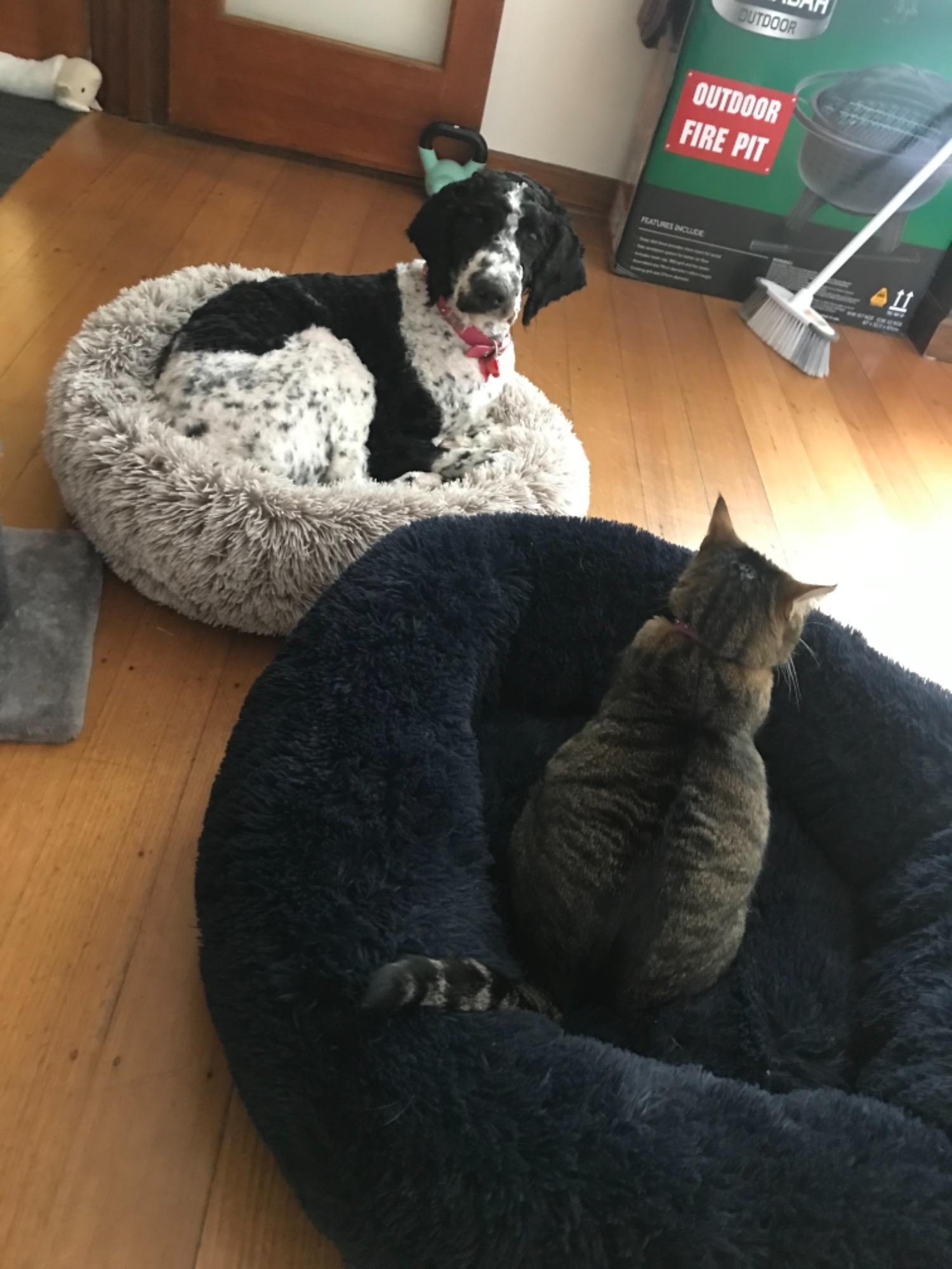 Duncan loves all people and dogs which he can become quite excited and jump. He currently is living with 2 cats and a sister poodle where heâs learning not to chase and to calmly handle life