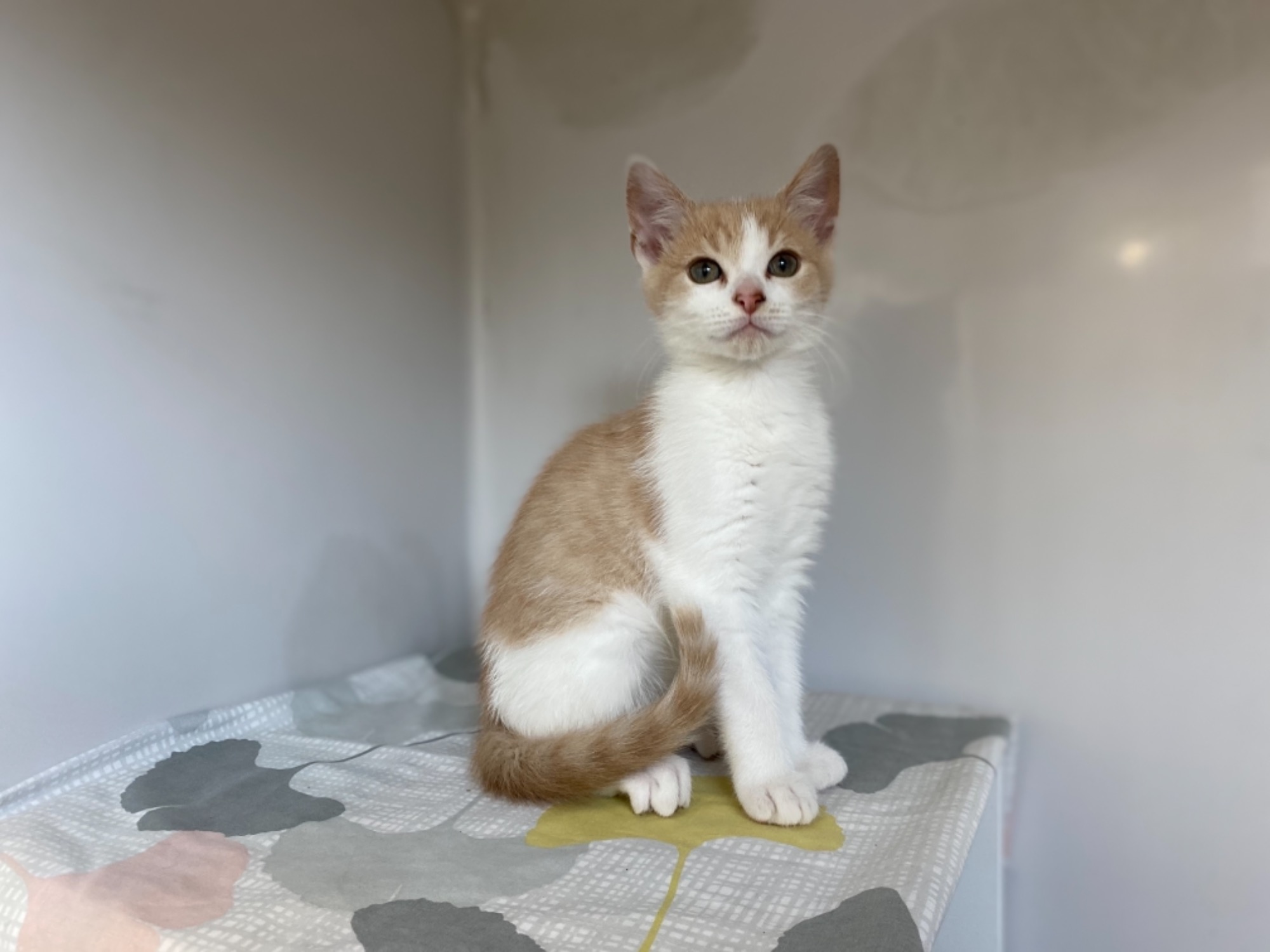Sesame is a 12 week old Male Champagne & White Domestic Short Hair Kitten.