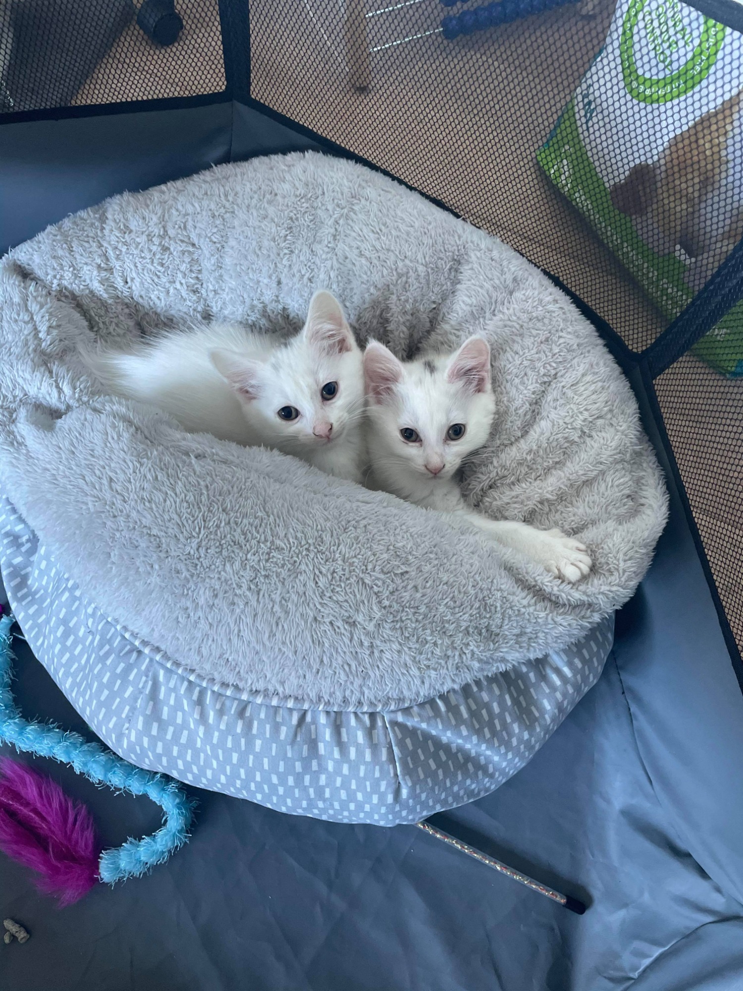 I only home to indoor homes as cats are always getting run over but these white kittens are highly prone to skin cancer if exposed to the sun all day so really please, indoor homes only.