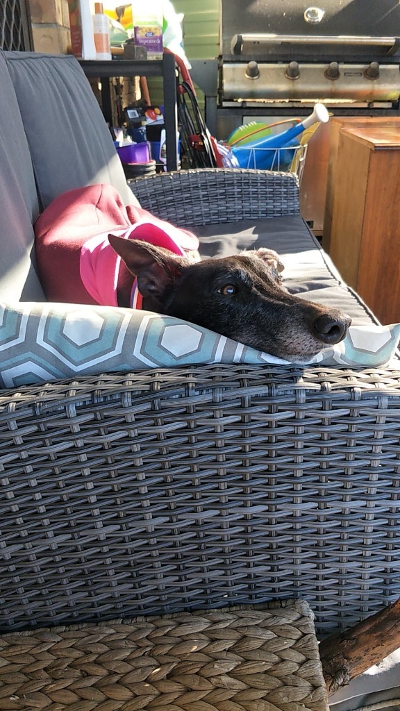 Hi everyone, I am one very sweet girl....typical of my breed. I just love people of all sizes and would make a great addition to any family. We greyhounds love to sleep upside down, sometimes on your sofa if you allow us. I do like playing with other doggies and get along really well with others. I would be so happy to have a friend in my forever home. Please come and visit, I believe my name will fit perfectly with your surname...