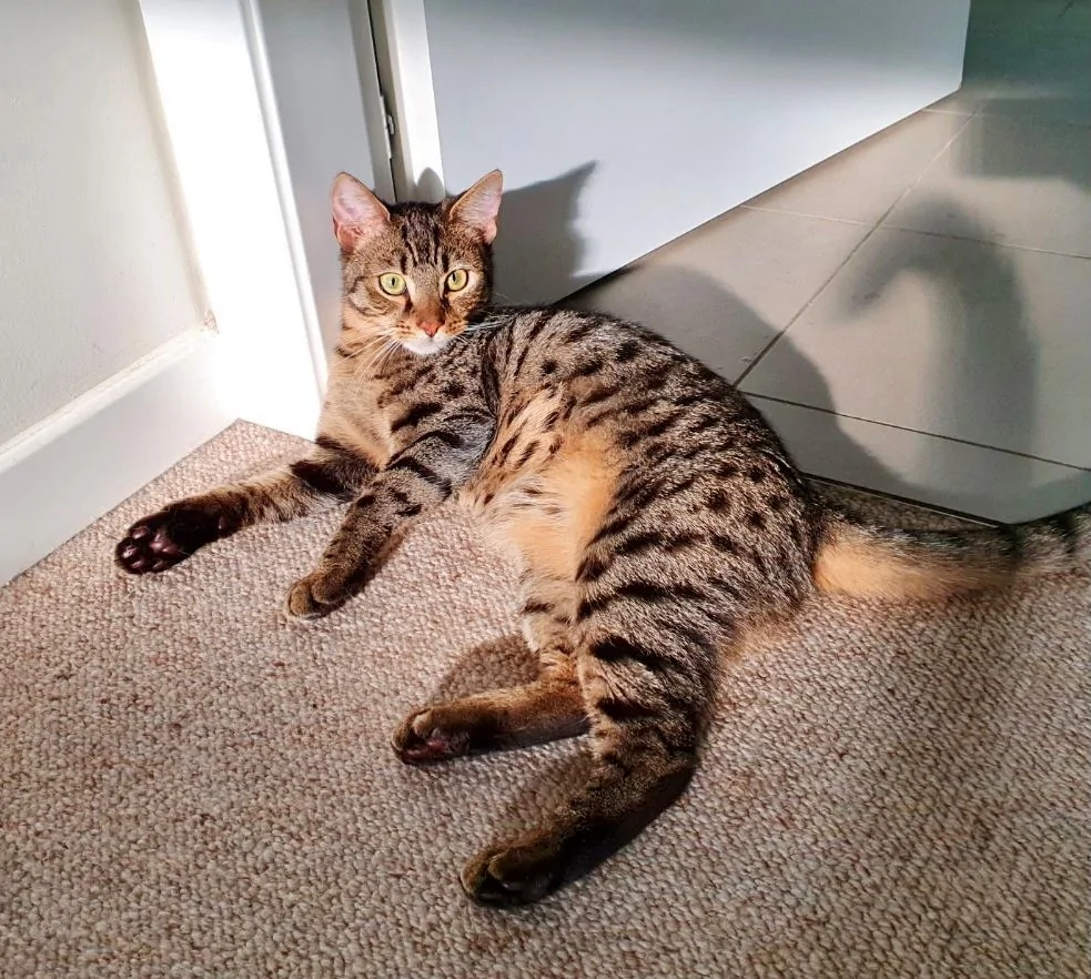 Sammy and his sister Sandy are sweet older kittens who could go as a pair or separately. Sammy is the slightly shyer one of the pair, however once he gets to know and trust you, he loves pats and attention. He likes to knead his sleeping area to ensure it is at maximum comfort level and also loves to run around chasing shadows to release his kitten energy.