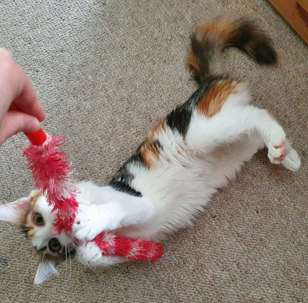 Sandy and her brother Sammy are sweet older kittens who could go as a pair or separately. Sandy is slightly more confident and she will settle in more quickly. She likes pats and attentionand her favourite toy is a ping pong ball which she plays with for hours on end by herself – wooden floors recommended but not necessary.