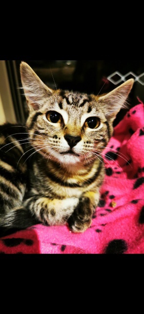 She co exists happily in a multi cat household but is a more affectionate lady when she’s on her own, so may be best in a single cat home. She has lived with a large dog though and they were good pals!