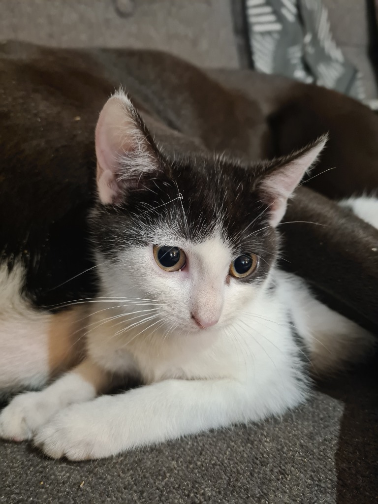 I'm only 10 weeks old, so a lot of information about me is unknown which might put some people off but I see it as a great opportunity to grow with my new fur-amily! I haven't been tested with dogs or other cats currently, but possibly with proper introductions and time I would be able to share my home with some fur-iends. One thing I do know is I'm super excited to find my new place to stay, and I would be fur-ever grateful for a second chance at happiness.