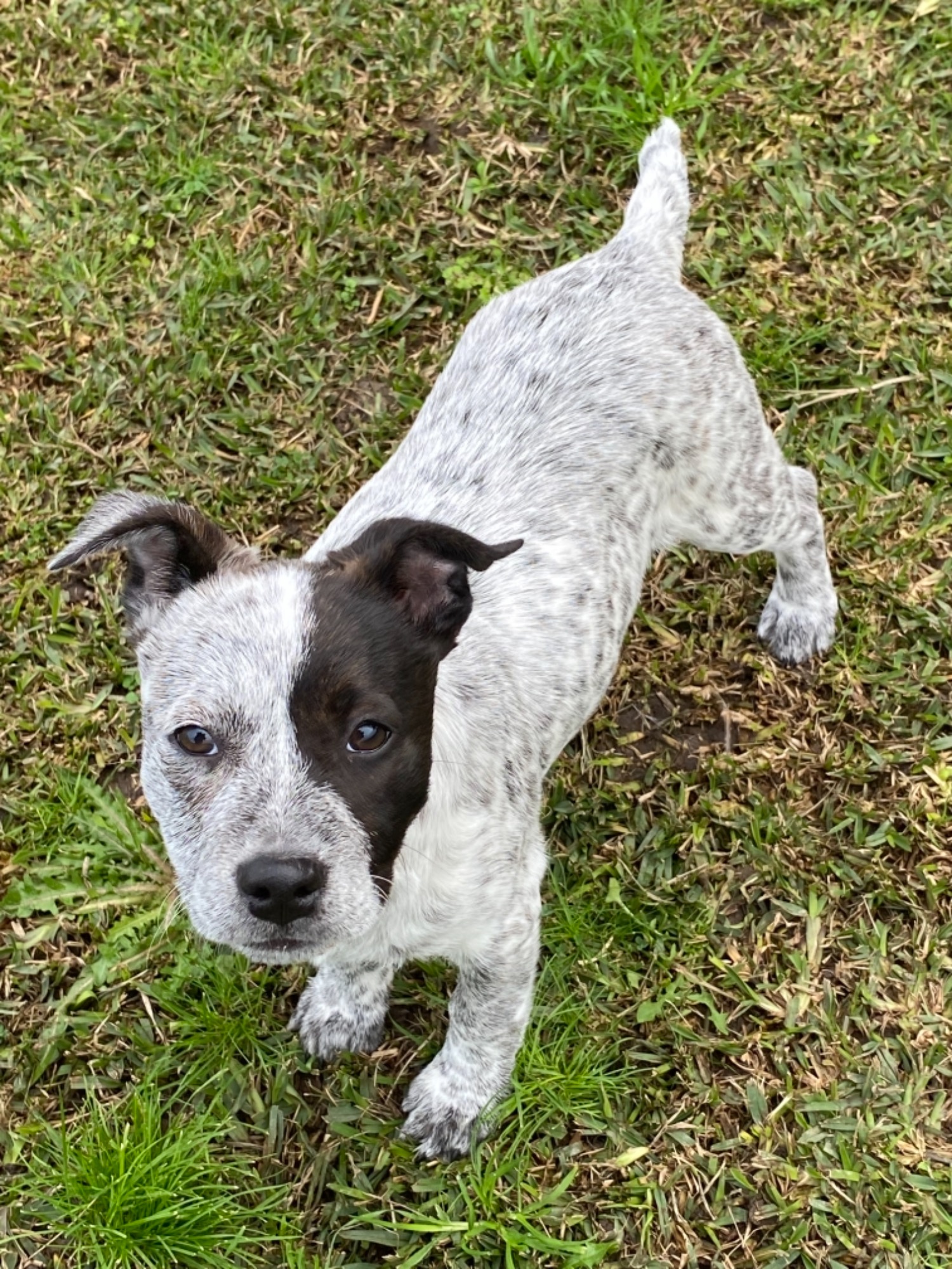 I'm a cattle x staffy puppy looking for my forever home. At the moment, I live with my brother, Cooper, who is also up for adoption, 2 resident doggos and 1 resident kitty. I absolutely loooovvveeee playing and kissing the other doggos but I couldn't care less about the kitty.