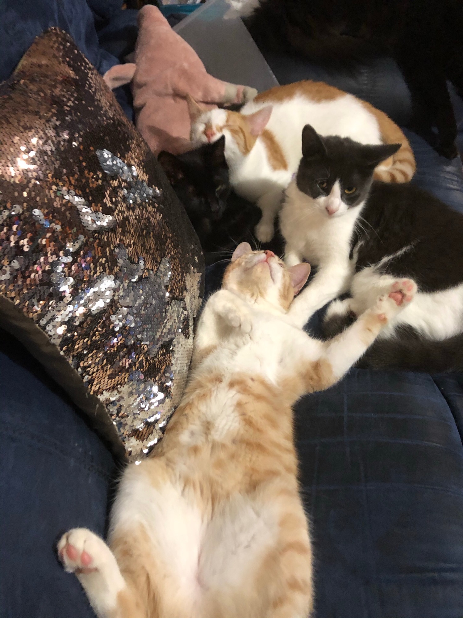 Hi, my name is Monty. I am a big smooch who loves pats and is happy to snuggle next to you on the couch and purr my heart out. I am a very handsome man, with one blue eyebrow and one white eyebrow. I also enjoy wreaking havoc with my siblings in my foster carers house. I have been strictly an inside cat since I came into her care, i don’t even try to escape out the door as i have already done the hard yards looking after myself. I grew up on a farm without human contact until I was about 12 weeks old, then I was caught with my brothers and sisters, and taken to my foster carers house. She wasn't sure whether she would be able to tame me, but she did somehow and has shown me how kind humans can be.