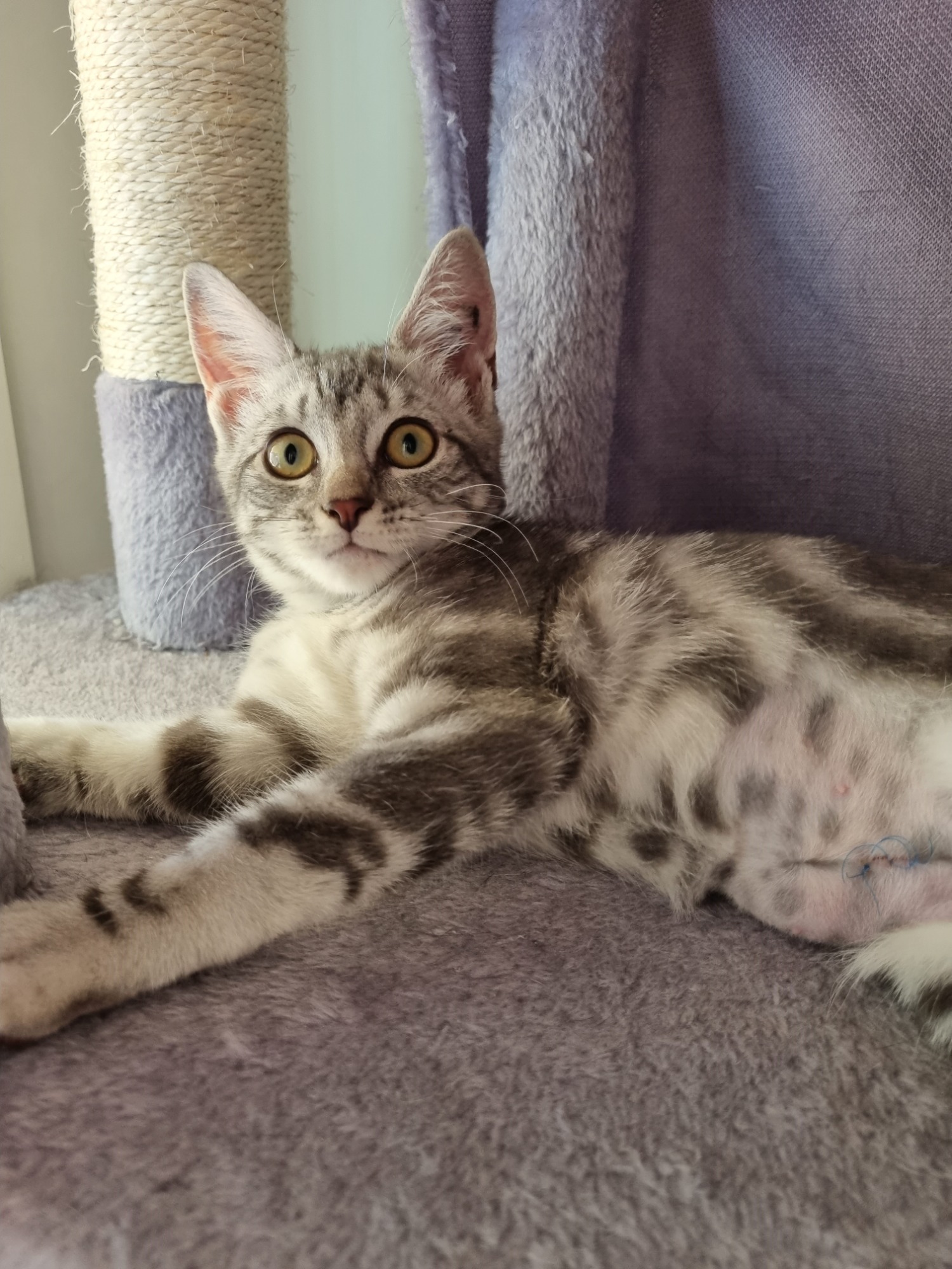 Reya loves her toys. You can quite often find her inside her toy box pulling out the toys she wants to play with. Her favourites are balls that she can chase around the house ⚽️ Reya will also happily play with her toys with her foster humans as long as they sit quietly with her. She also loves to climb to the very top of her cat tower so she can look down on everyone.