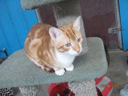 Weasley has been at the animal shelter since 12/10/2009. Weasley is a super cute and super sweet ginger boy who is very loving and affectionate, extremely playful and very cuddly. He loves to spend his days playing with his feline friends, getting up to mischief and lazing about. Due to his sun sensitive nose, weasley will be best suited as an indoors cat to protect him from the sun. With his beautiful nature and gorgeous good looks, he is guaranteed to make a treasured family addition. Weasley is very much looking forward to going on an exciting new adventure as he has been at the animal shelter since he was one week old