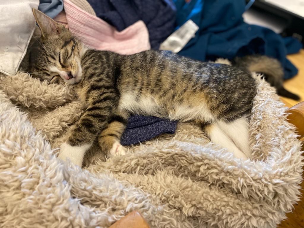 Their favourite past time is playing, followed by lots of cuddling and making biscuits i.e. kneading. As they were taken in when they were only a few weeks old, they still like to suckle on their blanket.
