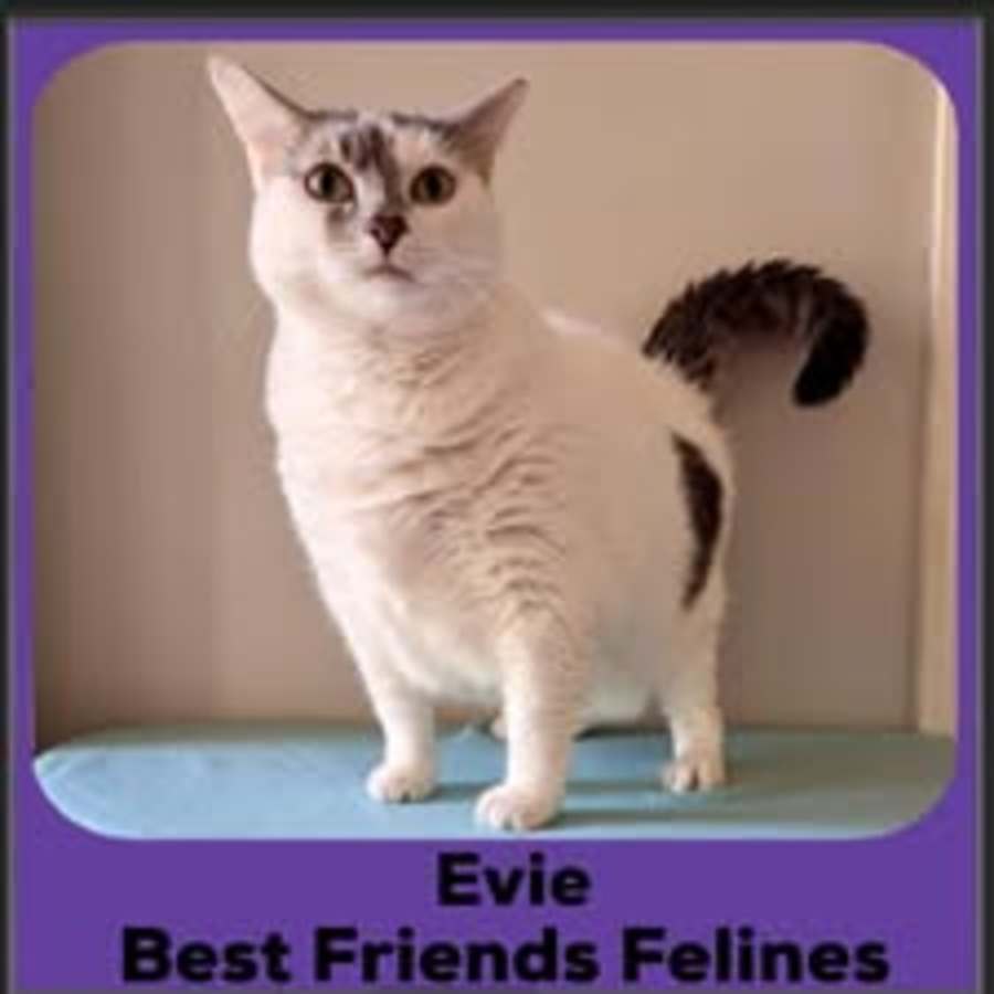 Whoever adopts Evie will be rewarded with such a sweet, delightful girl. She's so friendly and chatty. She will follow you all around the house demanding your attention and your love, and she purrs her head off when you pat her.