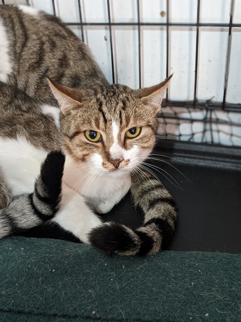 There was a pretty big group of us cats living at the college (enough to fill a classroom!) A kind staff member started feeding us and has been working hard to get us into the care of SAFE so we can hopefully find homes.