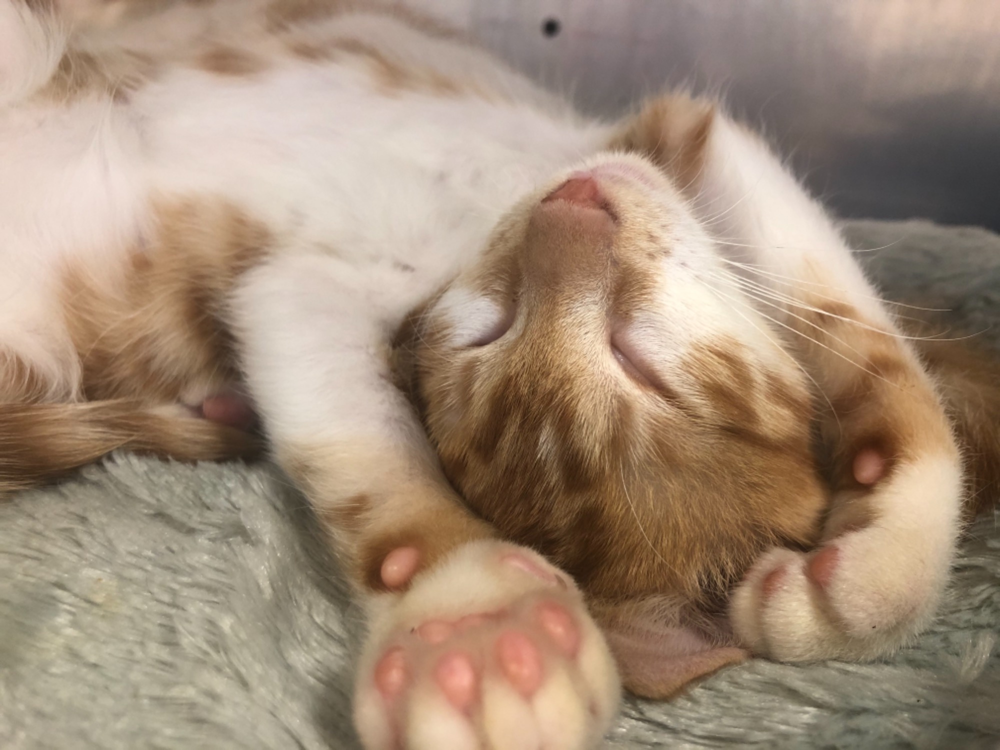 Bueller is the sweetest kitten ever! Bueller list both his eyes after they had ruptured during his time as a stray but this does not bother him one bit. Watching him play and map out his environment is amazing! He runs into less walls then his brother! He is a purr monster too and adores life.