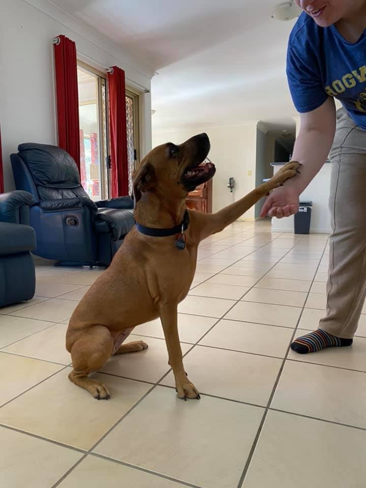 She’s a big bundle of joy and would be best around adults and older children, in a secured yard which gives you all plenty of room to hang out and play ball (especially the squeaky ones), one of her favourite games!