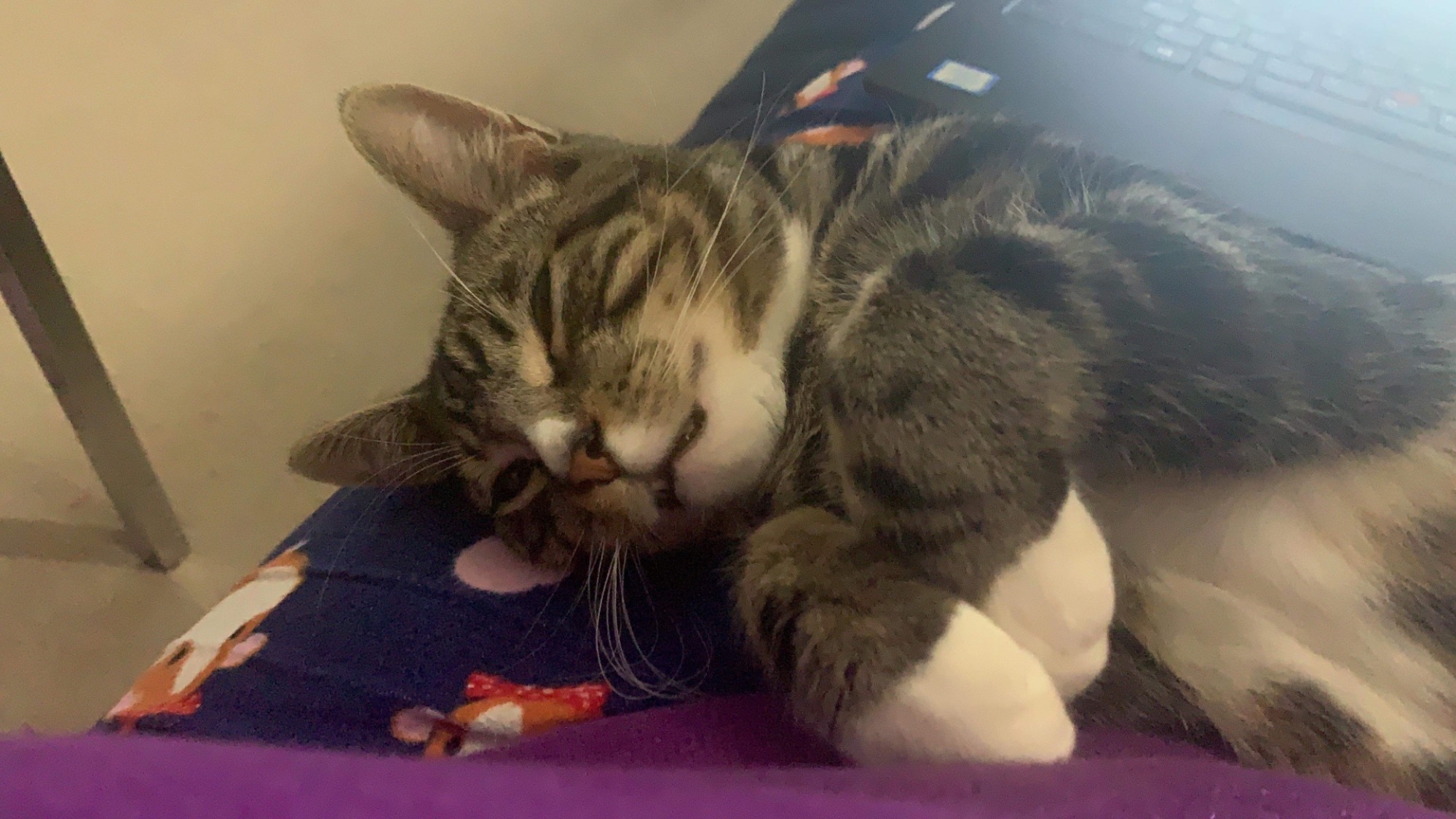 Very snuggly, always jumps onto laps and curls up for a good snooze and purring up a storm.