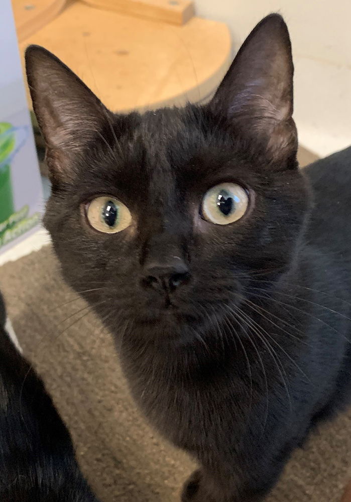 Spice is a friendly and inquisitive young kitten. He’d rather spend time exploring and will take time to check any new things out. That means when you take him home you will need to be patient with him as everything will be a bit overwhelming. Once he is comfortable however he will blossom into a beautiful sleek black cat.