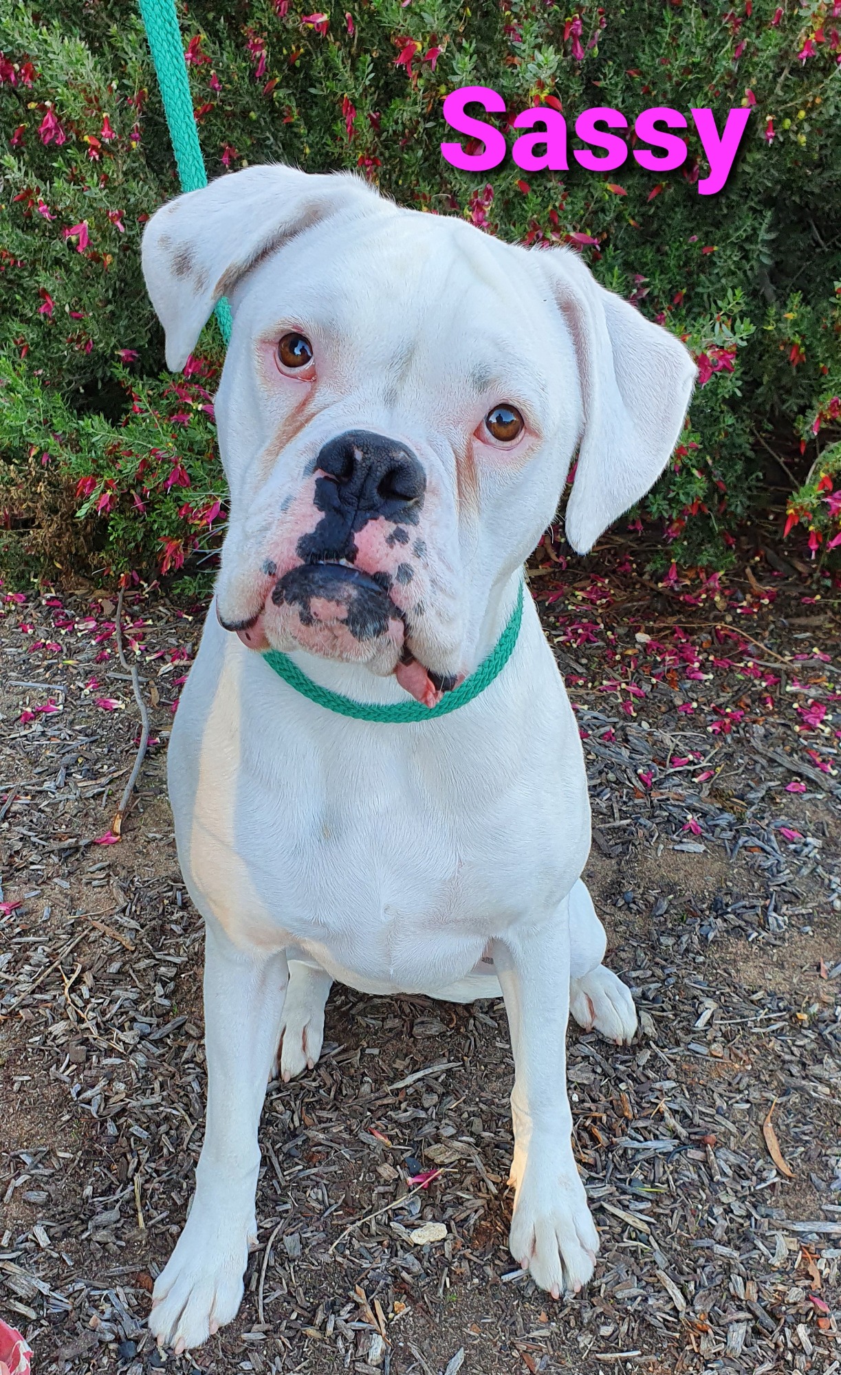 Sassy is a very soft soul that will bond quickly with a female owner, but will take longer to warm up to men. Sassy is very responsive to guidance and is keen to please.