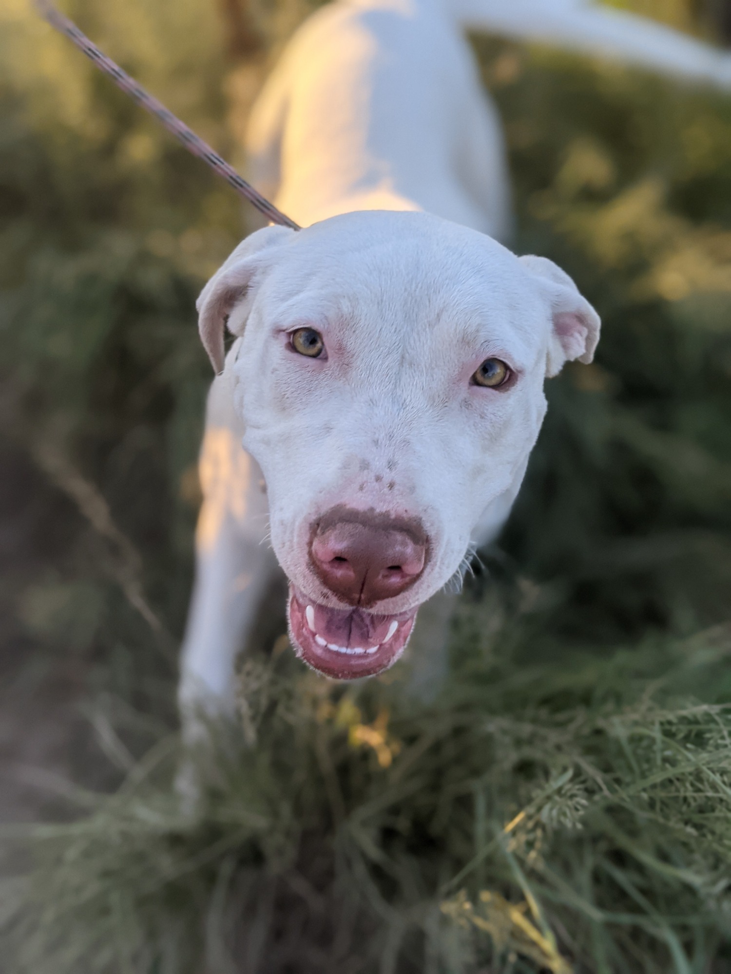 Honey is a happy girl that's showing to love nothing more than a cuddle. She shares her foster home with a bunch of other dogs and has shown to share her areas well with others.